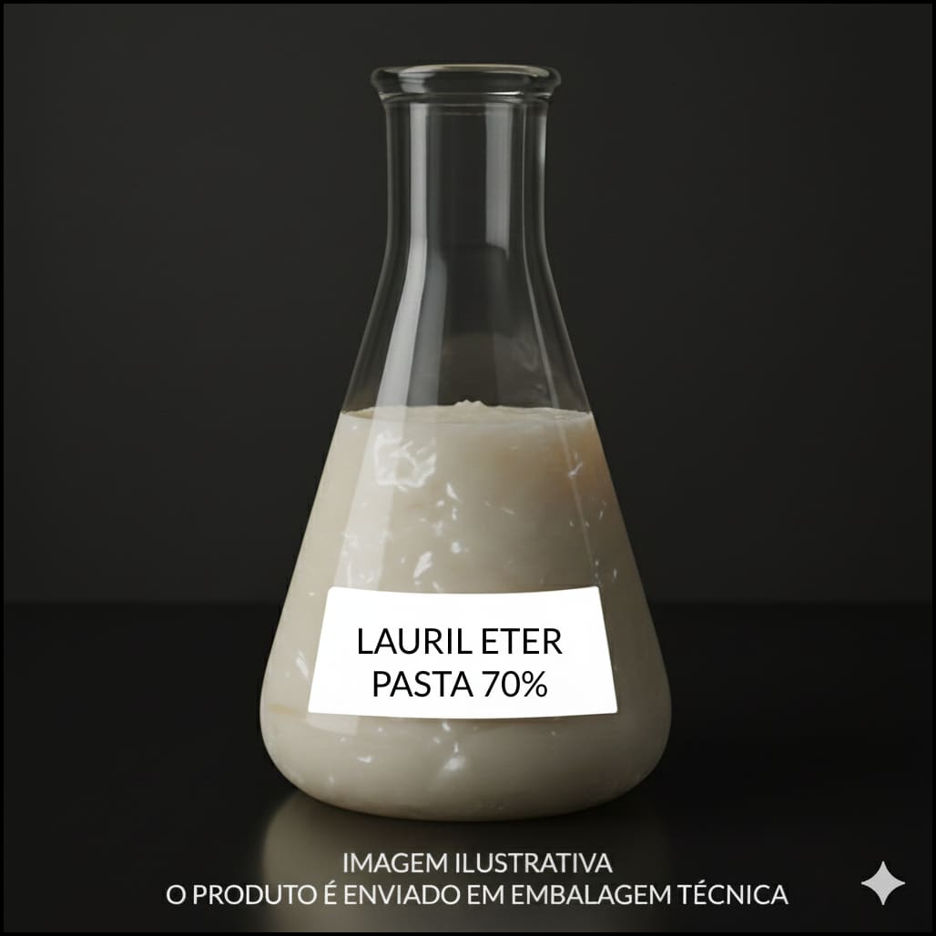 Lauril Éter Pasta 70% Insumo – 500g (Matéria-prima) Tensoativo aniônico concentrado de alta performance, destinado exclusivamente para formulações cosméticas profissionais. INCI Name: Sodium Laureth Sulfate. Versão em pasta que oferece economia e alto poder espumante, sendo a base ideal para shampoos e sabonetes líquidos que exigem máxima eficiência.